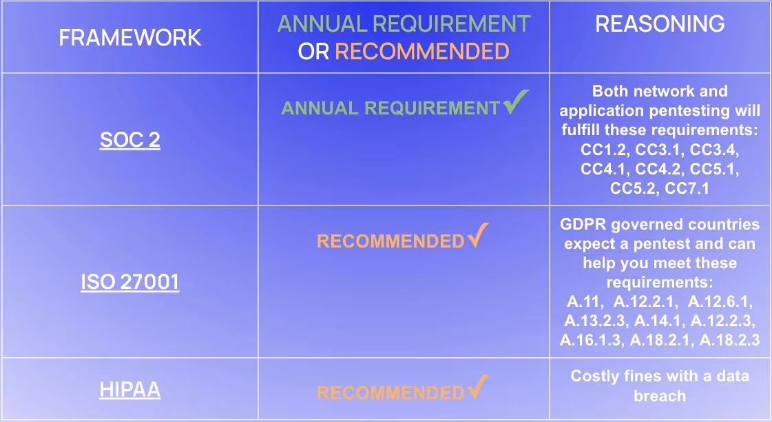 By conducting regular pentests, we not only comply with legal obligations but also build trust with our customers. It shows we're committed to safeguarding their information.