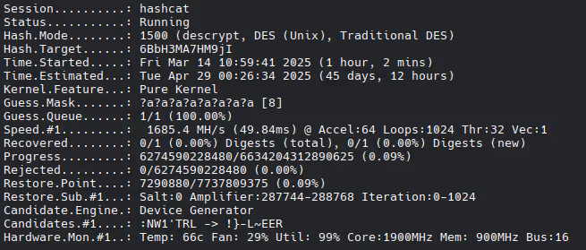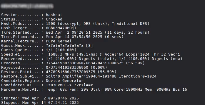 Fortunately for us, these are simply estimates and in the end we were able to brute force the encrypted password in (JUST!) 11 days (and 22 hours)!