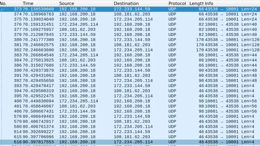 We quickly determined that these UDP requests were the peer-to-peer (P2P) communications between the Furbo device and their servers.