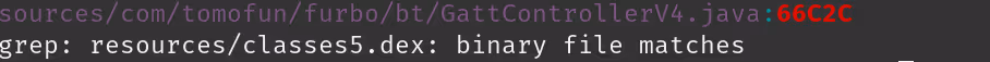 We figured that if they were being used in the communication flow, they must be referenced somewhere in the APK. Using grep, we searched for the locations of the UUIDs.