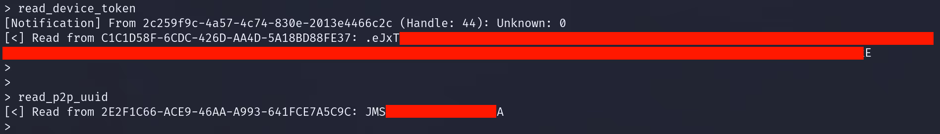 Using these 2 exposed GATT characteristics, we were able to retrieve two out of the four victim details required to complete the attack chain. Now all that was left was to retrieve the AccountID and DeviceID.