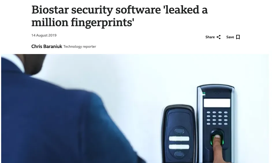 A centralized database holding millions of fingerprint and face templates was leaked. Unlike passwords, biometrics cannot be reset, making this type of breach permanently damaging.
