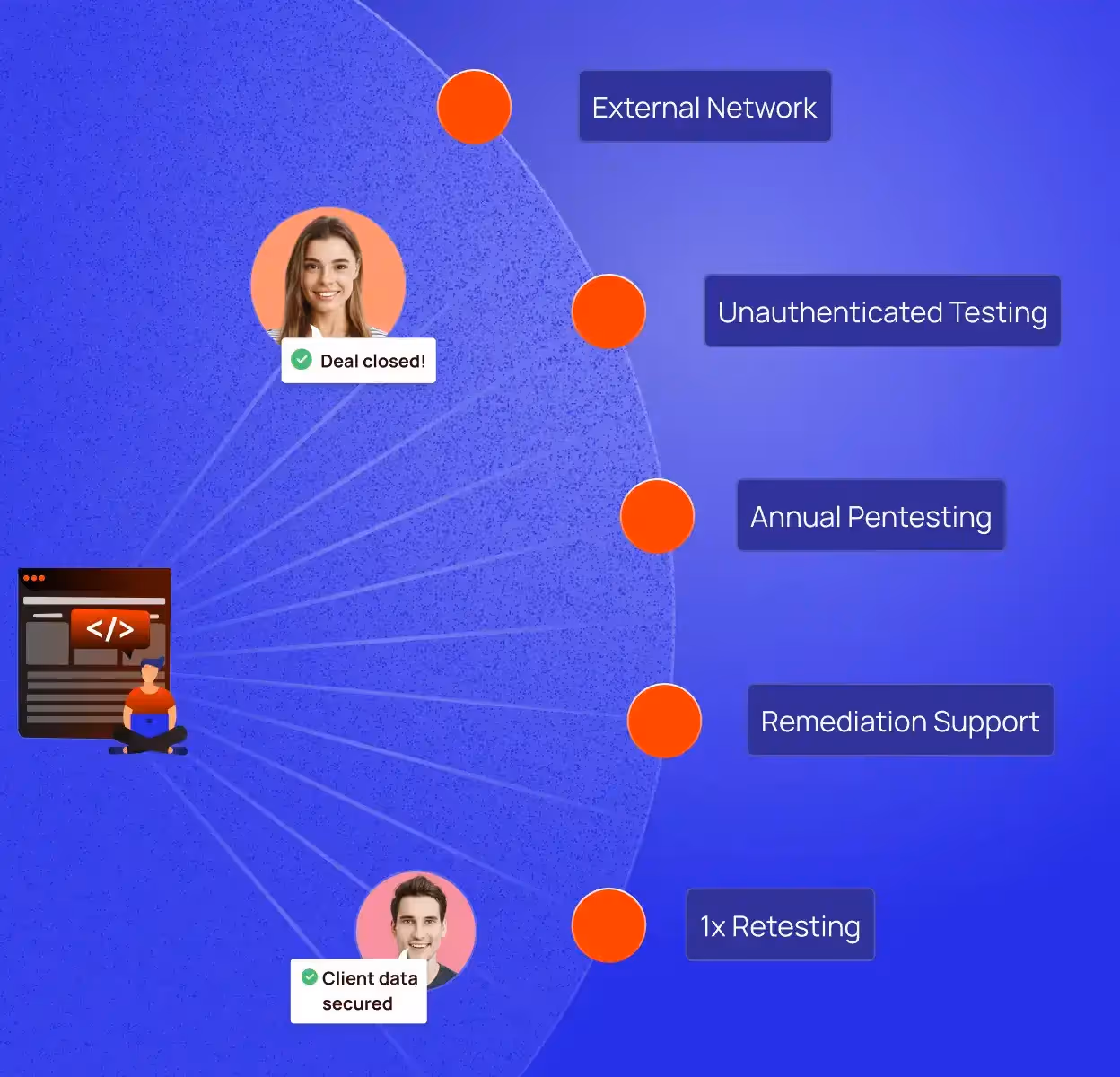 - Pentest Essentials: Annual web app and network pentesting to meet compliance without draining your developers’ time.