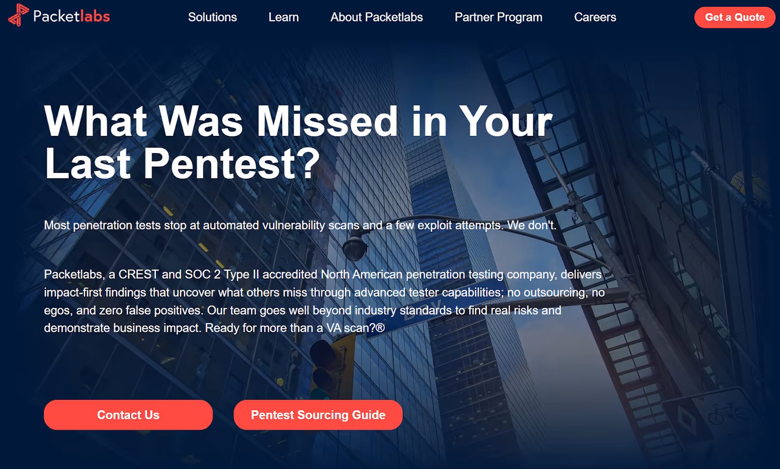 Built in 2011, Packetlabs made its name specializing in deep, manual penetration testing. With an OSCP-certified team and 100% Canadian data residency, they deliver tailored, thorough assessments. Packetlabs’ focus is sharp testing backed by high client satisfaction, not high-volume engagements.